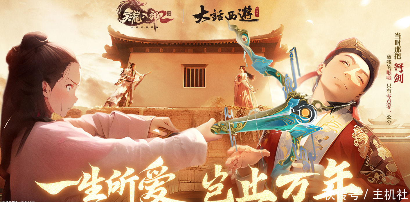 今天我刚盛开天龙八部2的官网,就看见了星爷版至尊宝的海报!配景是废话西游阻抑时,城墙上的夕阳武士和无名女侠两两相望,主画面是紫霞拿着弓弩横在身穿喜服的至尊宝脖颈间,一旁还有悟空其时的出圈台词“其时那把弓弩离我的喉咙只好零点零一公分”,一张海报瞬息让我梦回一群小孩挤在小小的电视机眼前看电影的情形,一下就往常了这样多年,提及来还真有些吊祭!